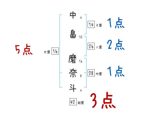 外運![]() | 中畠磨奈斗さんの外運は16画の5つ星!人望が厚く大きく発展する。逆転成功が見える。 生活面を象徴する運勢です。外部から受ける影響力を表し、結婚運、家庭運や職場、環境への順応性を表します。 |