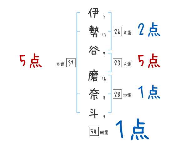 伊勢谷磨奈斗さんの画数の鑑定結果