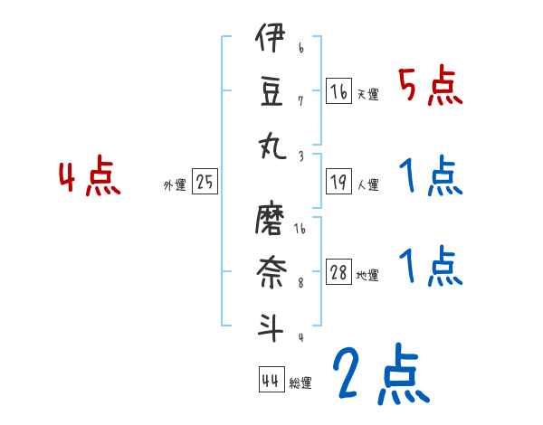伊豆丸磨奈斗さんの画数の鑑定結果