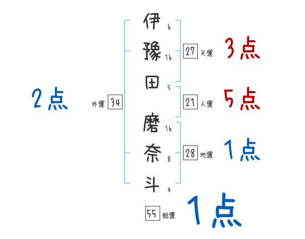 伊豫田磨奈斗さんの画数の鑑定結果