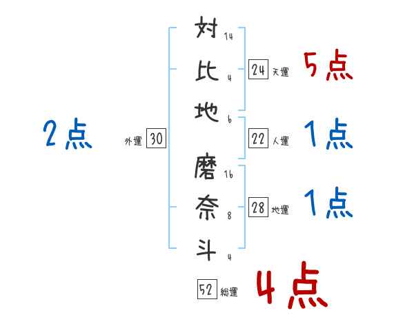 対比地磨奈斗さんの画数の鑑定結果