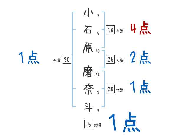 小石原磨奈斗さんの画数の鑑定結果