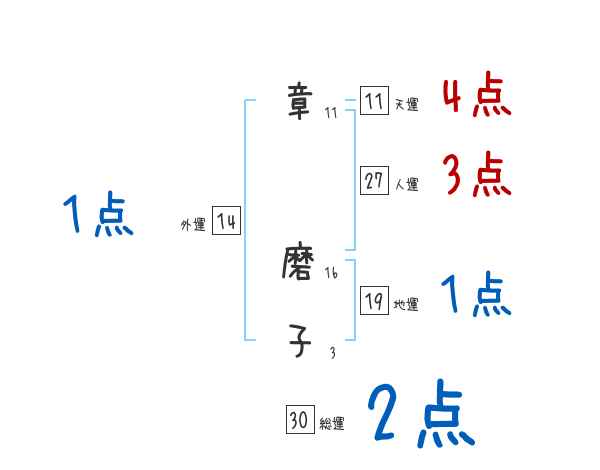 章磨子さんの画数の鑑定結果