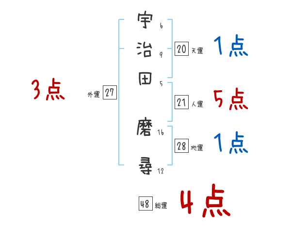 宇治田磨尋さんの画数の鑑定結果