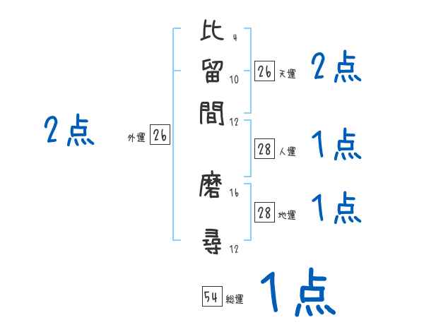比留間磨尋さんの画数の鑑定結果