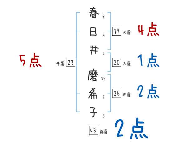 春日井磨希子さんの画数の鑑定結果