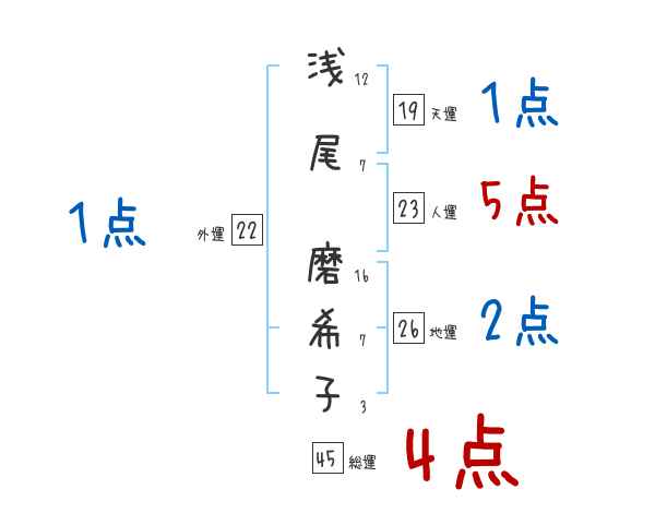 総運![]() | 浅尾磨希子さんの総運は45画の4つ星!もくもくと物事を進め達成する。地味な努力家。 あなたの人生を表す1番重要な運勢です。生涯を通じて影響する総合運となり、主に50歳以降の晩年期に影響を及ぼします。 |