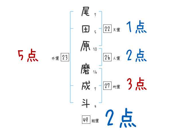 尾田原磨成斗さんの画数の鑑定結果