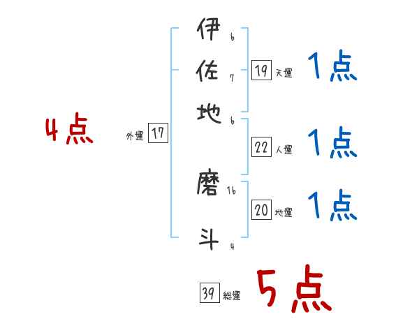 天運![]() | 伊佐地磨斗さんの天運は19画の1つ星!優れた才能を持ちますが、協調性が足りないことも。周りの人と協力する事を意識しましょう。 家系が持つ宿命的な運勢を表します。祖先から受け継いだ苗字ですので自分の力が及びません。家柄を象徴します。 |