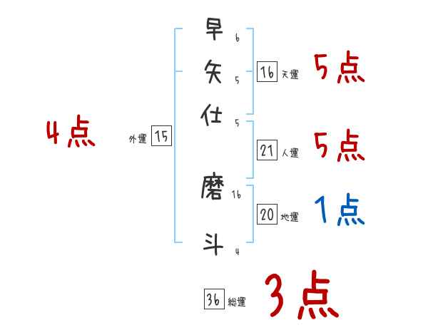 早矢仕磨斗さんの画数の鑑定結果