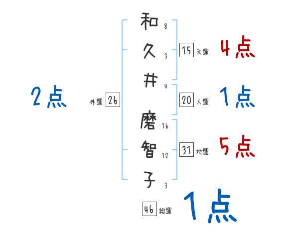 和久井磨智子さんの画数の鑑定結果