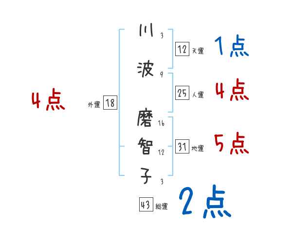 川波磨智子さんの画数の鑑定結果