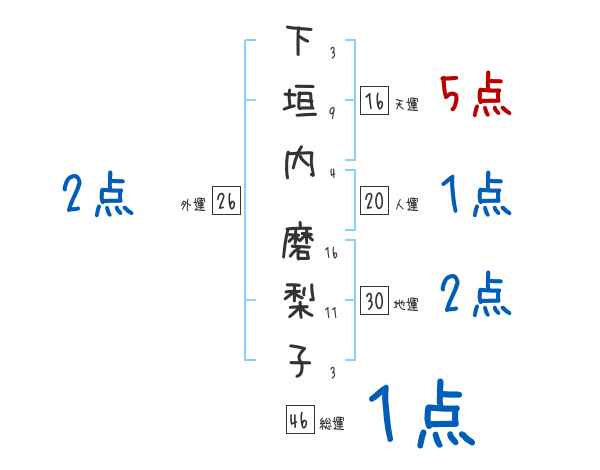 下垣内磨梨子さんの画数の鑑定結果
