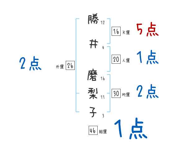 勝井磨梨子さんの画数の鑑定結果