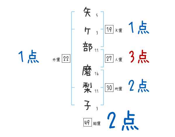 矢ヶ部磨梨子さんの画数の鑑定結果