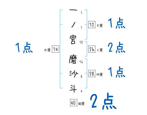 一ノ宮磨沙斗さんの画数の鑑定結果