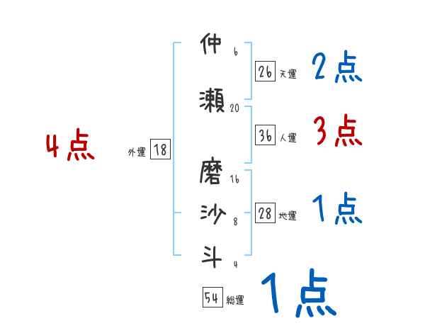 仲瀬磨沙斗さんの画数の鑑定結果