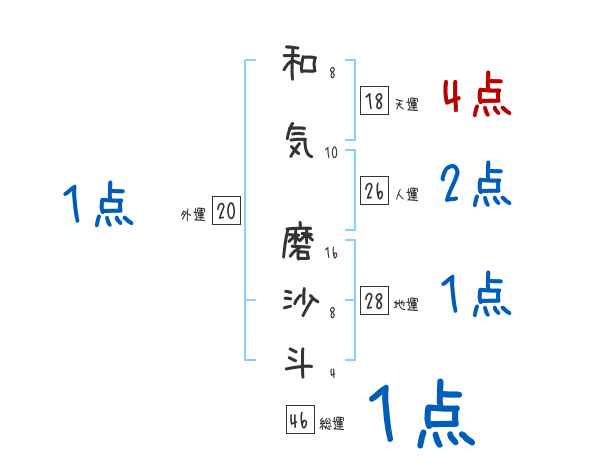 和気磨沙斗さんの画数の鑑定結果