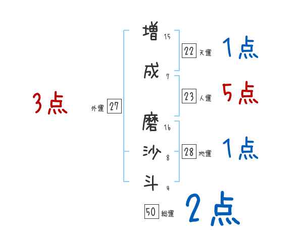 地運![]() | 増成磨沙斗さんの地運は28画の1つ星!家庭環境に注意。スポーツで活躍できる能力があるかも。 個性を表す基礎的な運勢です。性格形成や対人関係、行動力など家庭環境に影響されます。主に誕生してから20歳くらいまでの若年期の運勢を表します。 |