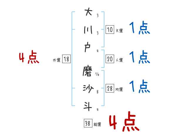 大川戸磨沙斗さんの画数の鑑定結果