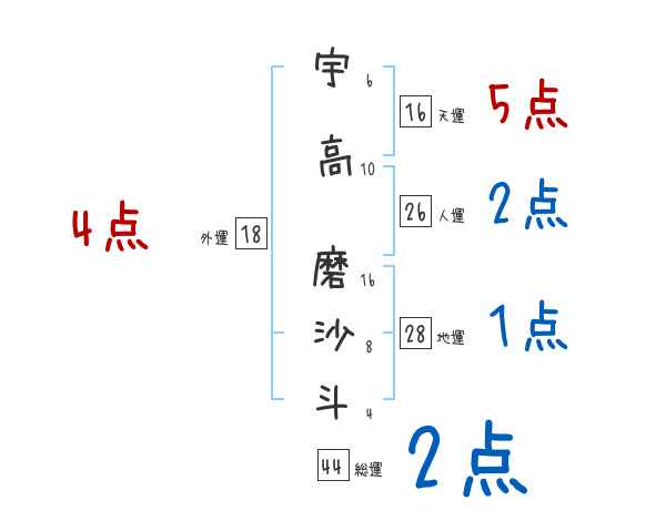 天運![]() | 宇高磨沙斗さんの天運は16画の5つ星!人望が厚く大きく発展する。逆転成功が見える。 家系が持つ宿命的な運勢を表します。祖先から受け継いだ苗字ですので自分の力が及びません。家柄を象徴します。 |