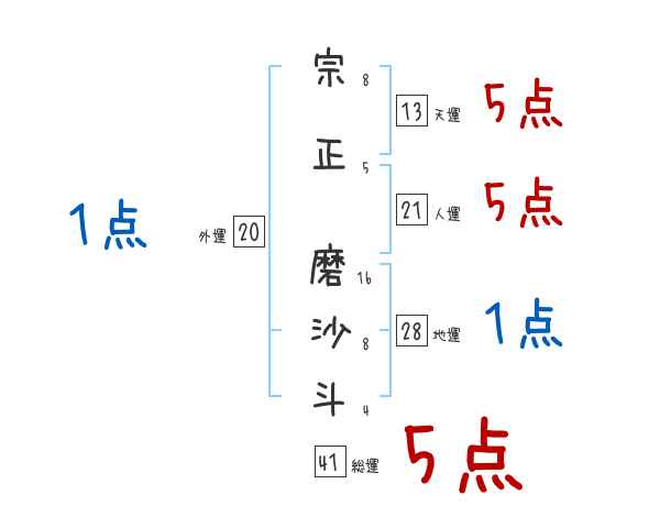 宗正磨沙斗さんの画数の鑑定結果
