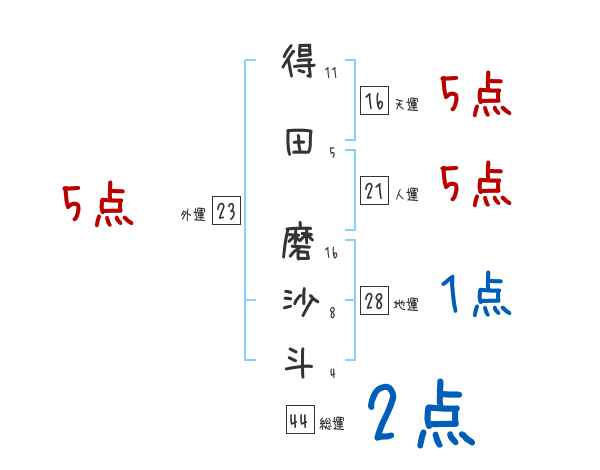 天運![]() | 得田磨沙斗さんの天運は16画の5つ星!人望が厚く大きく発展する。逆転成功が見える。 家系が持つ宿命的な運勢を表します。祖先から受け継いだ苗字ですので自分の力が及びません。家柄を象徴します。 |