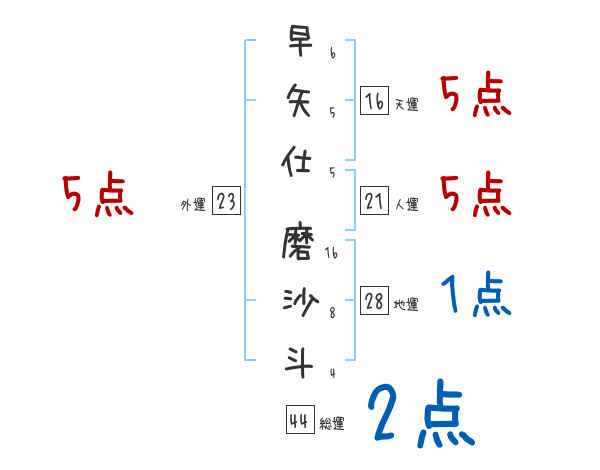 早矢仕磨沙斗さんの画数の鑑定結果