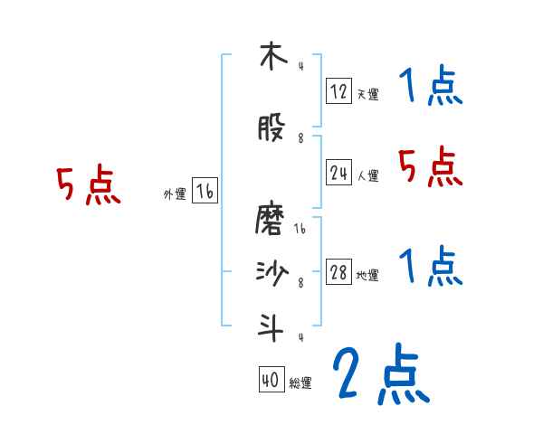 木股磨沙斗さんの画数の鑑定結果