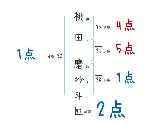 天運![]() | 桃田磨沙斗さんの天運は15画の4つ星!人徳があり出世する。順調に物事を進め円満な人生。 家系が持つ宿命的な運勢を表します。祖先から受け継いだ苗字ですので自分の力が及びません。家柄を象徴します。 |