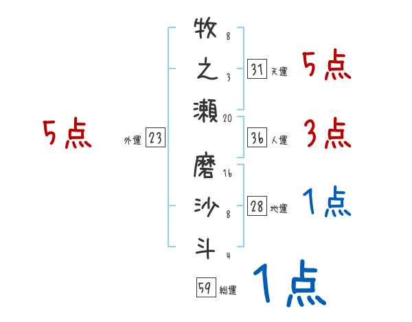 牧之瀬磨沙斗さんの画数の鑑定結果