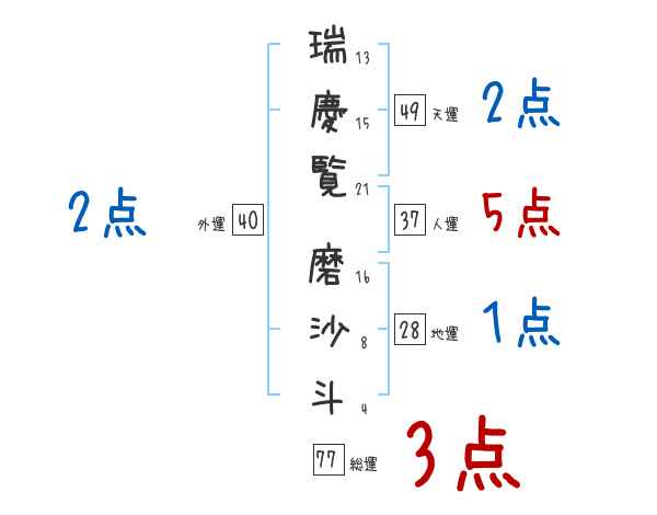 瑞慶覧磨沙斗さんの画数の鑑定結果