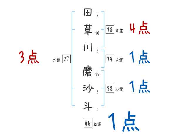 田草川磨沙斗さんの画数の鑑定結果