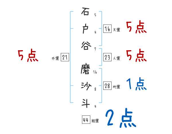 天運![]() | 石戸谷磨沙斗さんの天運は16画の5つ星!人望が厚く大きく発展する。逆転成功が見える。 家系が持つ宿命的な運勢を表します。祖先から受け継いだ苗字ですので自分の力が及びません。家柄を象徴します。 |