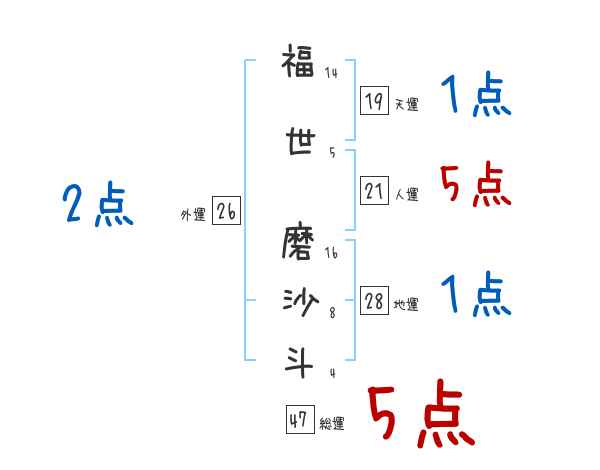 福世磨沙斗さんの画数の鑑定結果