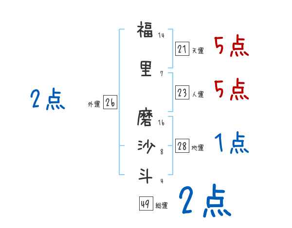 福里磨沙斗さんの画数の鑑定結果