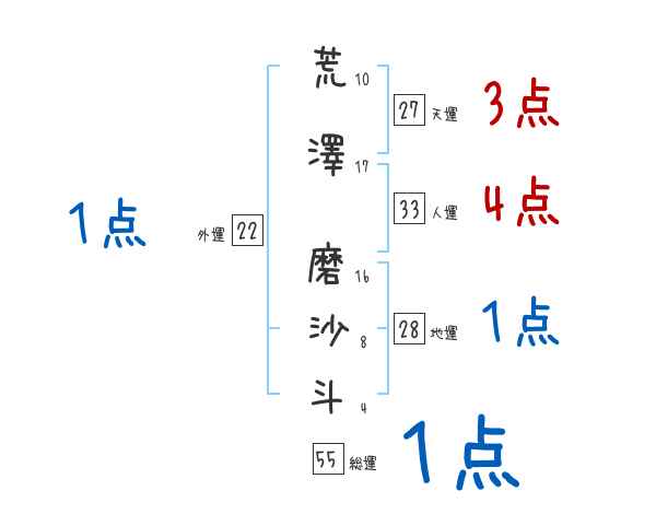荒澤磨沙斗さんの画数の鑑定結果