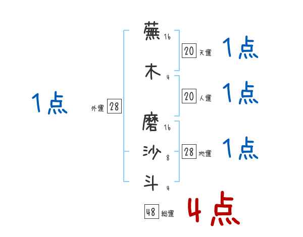 蕪木磨沙斗さんの画数の鑑定結果