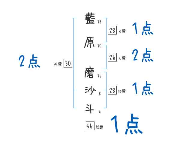 天運![]() | 藍原磨沙斗さんの天運は28画の1つ星!家庭環境に注意。スポーツで活躍できる能力があるかも。 家系が持つ宿命的な運勢を表します。祖先から受け継いだ苗字ですので自分の力が及びません。家柄を象徴します。 |