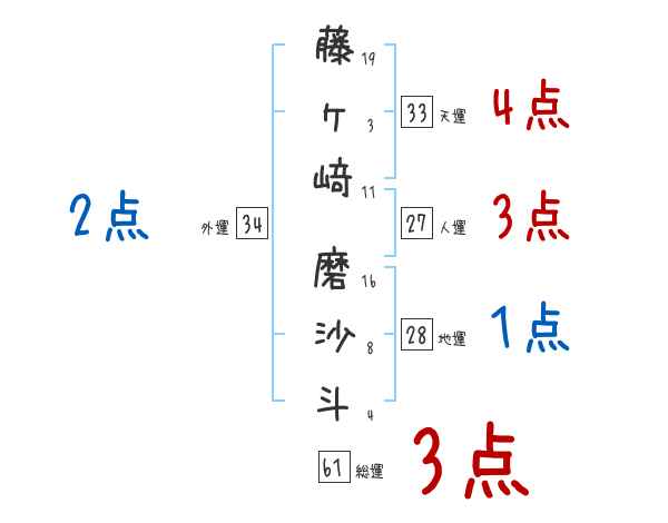 藤ヶ﨑磨沙斗さんの画数の鑑定結果