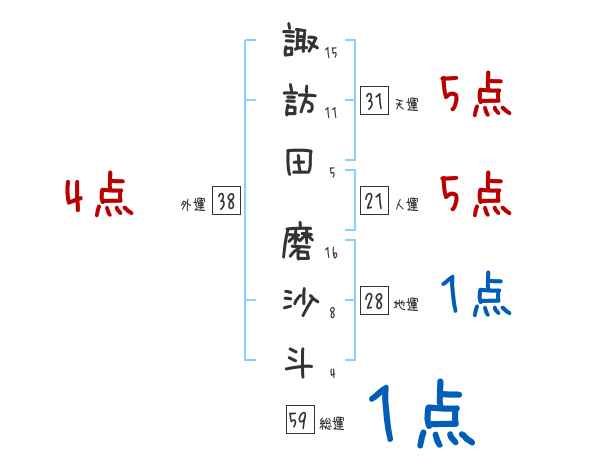 諏訪田磨沙斗さんの画数の鑑定結果