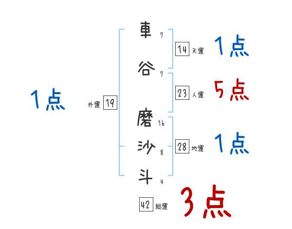 天運![]() | 車谷磨沙斗さんの天運は14画の1つ星!人に対して優しいがストレスを溜め込みがち。人間関係のトラブルを避けるよう気をつけましょう。 家系が持つ宿命的な運勢を表します。祖先から受け継いだ苗字ですので自分の力が及びません。家柄を象徴します。 |