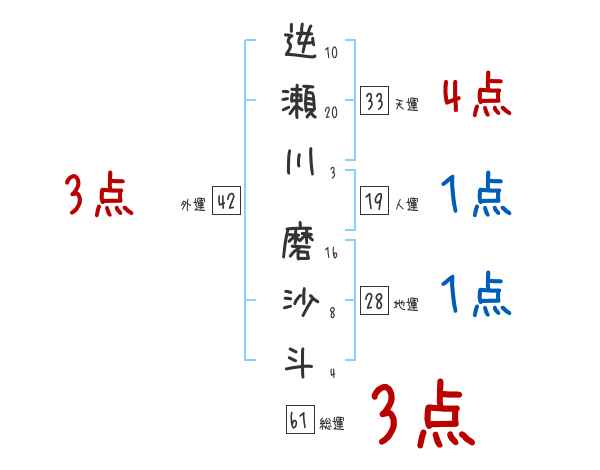 逆瀬川磨沙斗さんの画数の鑑定結果