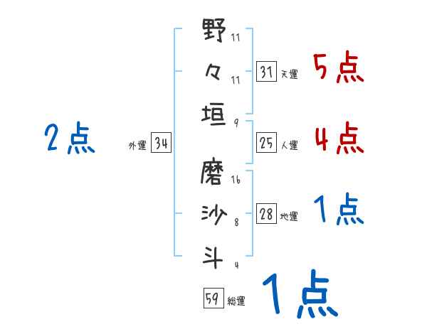 野々垣磨沙斗さんの画数の鑑定結果