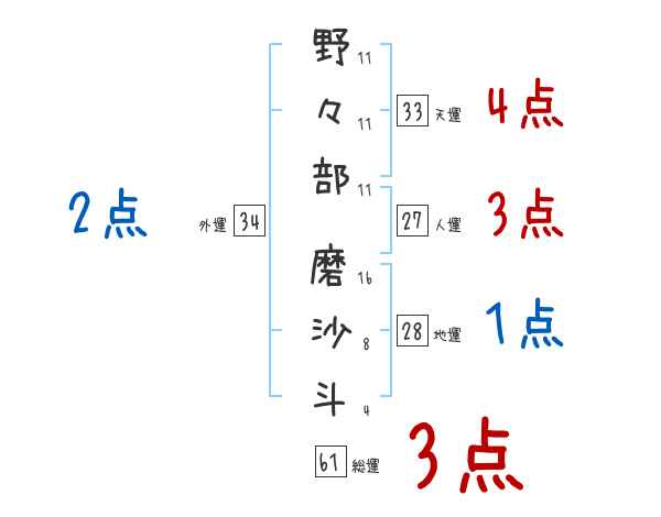 野々部磨沙斗さんの画数の鑑定結果