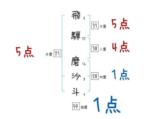 飛騨磨沙斗さんの画数の鑑定結果