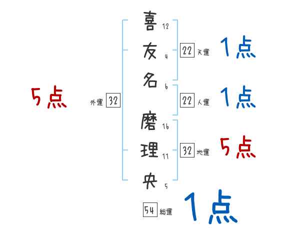 喜友名磨理央さんの画数の鑑定結果