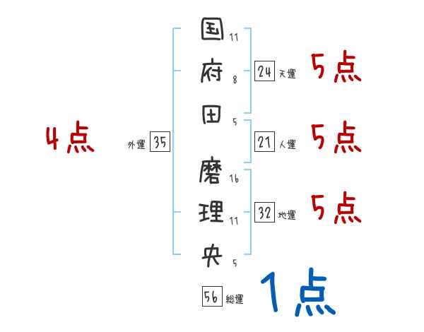 天運![]() | 国府田磨理央さんの天運は24画の5つ星!家庭運が良く順調な人生。金運にも恵まれる。 家系が持つ宿命的な運勢を表します。祖先から受け継いだ苗字ですので自分の力が及びません。家柄を象徴します。 |