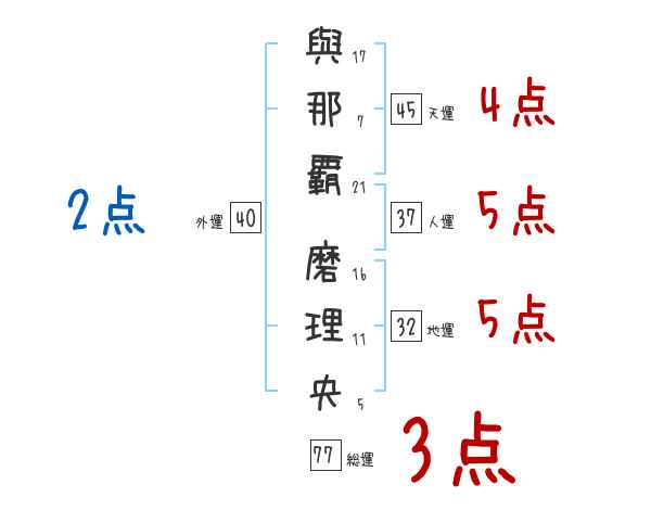 與那覇磨理央さんの画数の鑑定結果