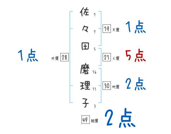 佐々田磨理子さんの画数の鑑定結果